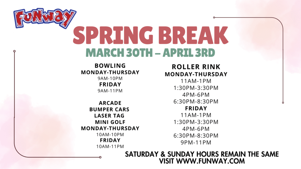 | Roller Skating | 12:00 PM – 2:00 PM 2:30 PM – 4:30 PM 5:00 PM – 7:00 PM 7:30 PM – 10:00 PM (Adult skate 18+) |