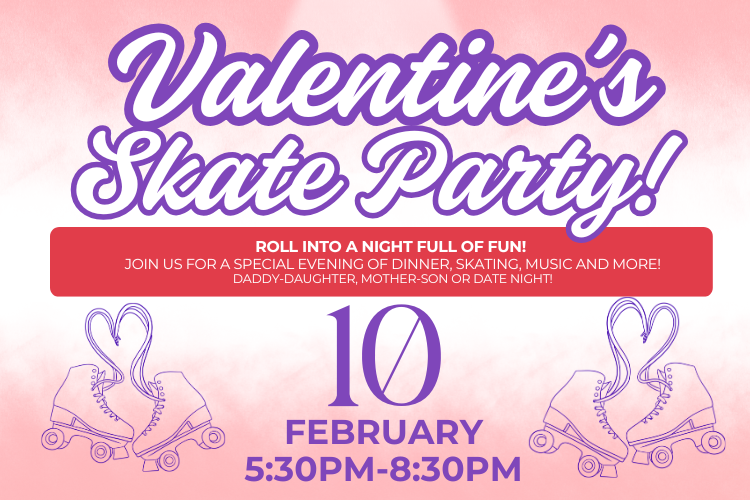Tuesday, February 10th, Roll into a night full of fun! Join us for a special evening of skating, dinner, music and more! Make it a Daddy-Daughter, Mother-Son or Date Night!