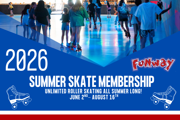 Roller Skating Pass valid June 2, 2026 through August 16, 2026. Valid for all open skate sessions!